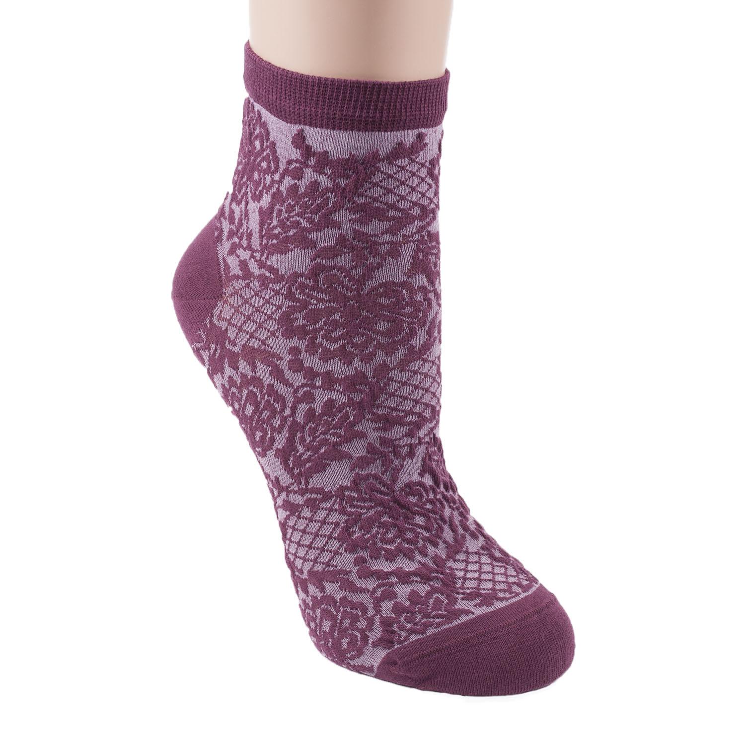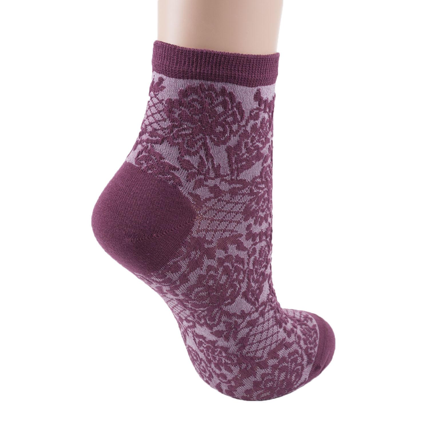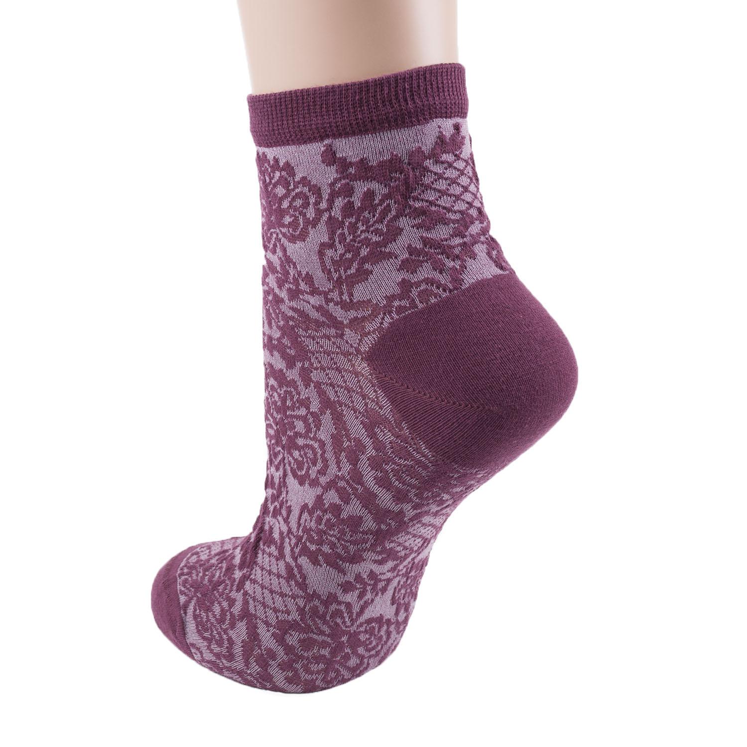 Изысканные женские носки с флористическим гобеленовым принтом. Мысок, пятка и резинка модели – однотонные. Использование качественного трикотажа с высоким содержанием хлопка, в сочетании с инновационной технологией швов, делает модель очень удобной.
