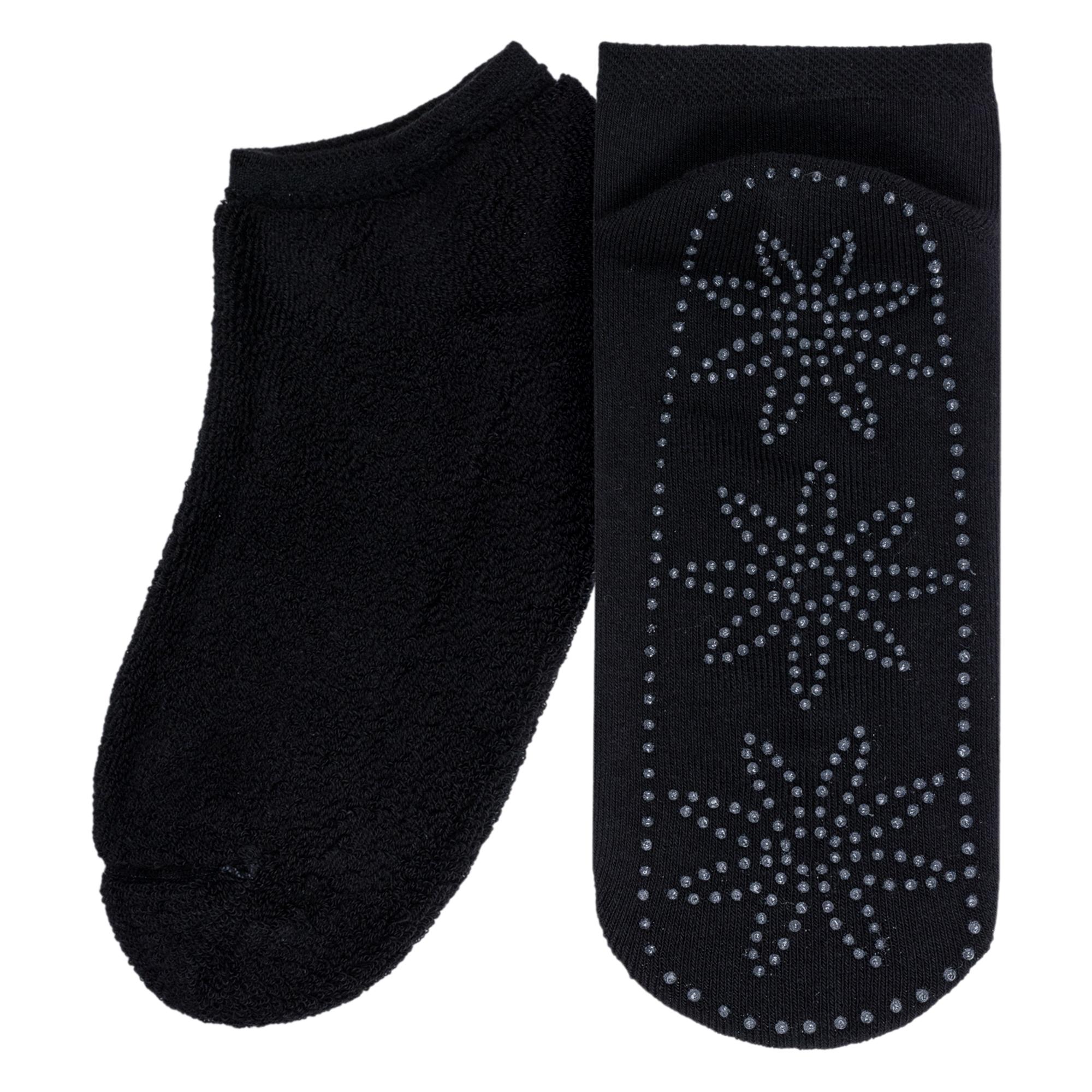 Высококачественные женские короткие носки с внутренней махрой. Модель отличается кеттельным швом, а также устойчивыми к истиранию мыском и пяткой. Интересная отличительная особенность носков – сверкающий узор на подошве, который позволяет не скользить по гладкому полу.