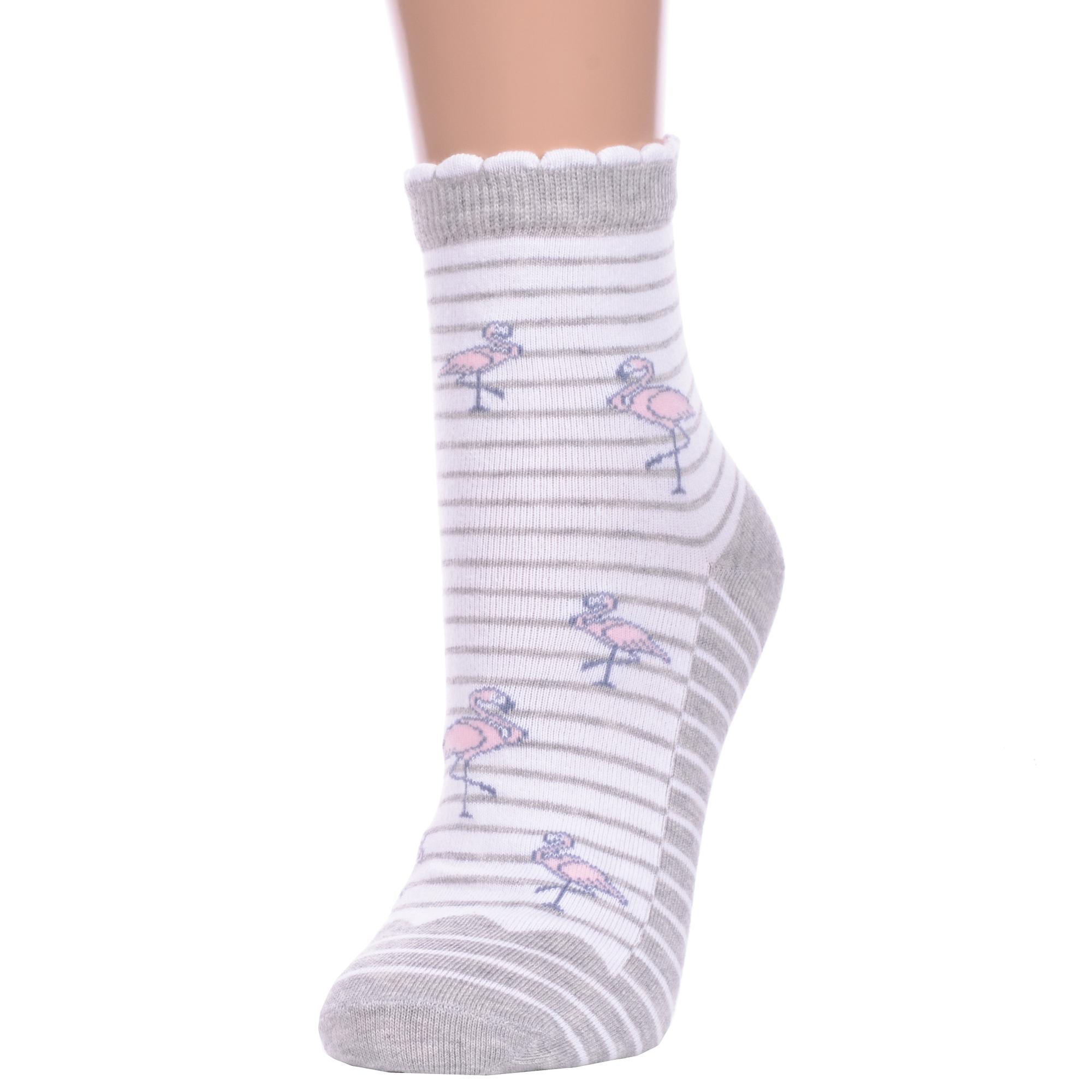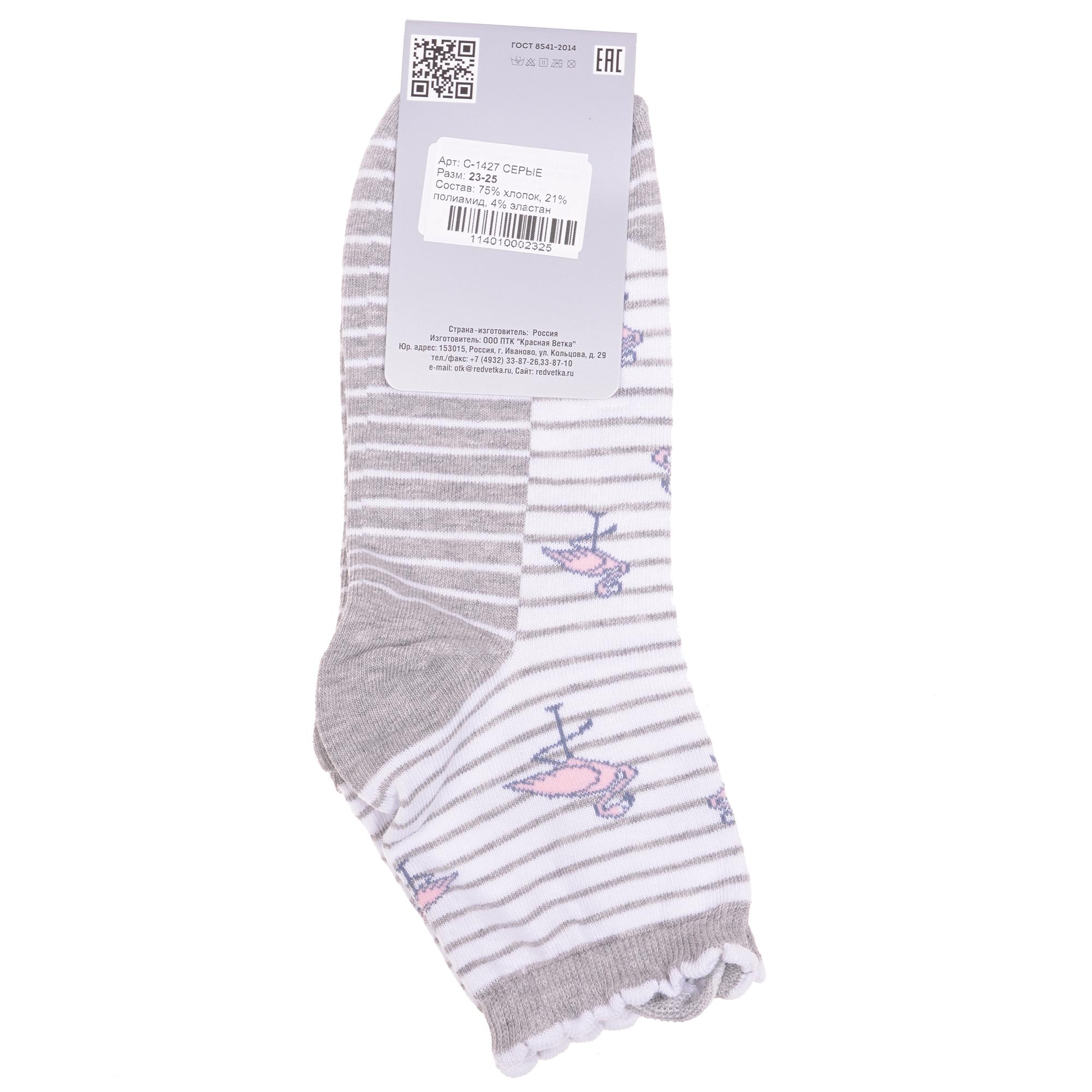 Круглогодичные укороченные женские носки, цвет серый, повседневные, возможно бесшовные, принт (рисунок): полоски, животные, с узором, состав: 75% хлопок, 21% полиамид, 4% эластан, арт. С-1427. Производитель «КРАСНАЯ ВЕТКА» Россия под брендом «Красная ветка».