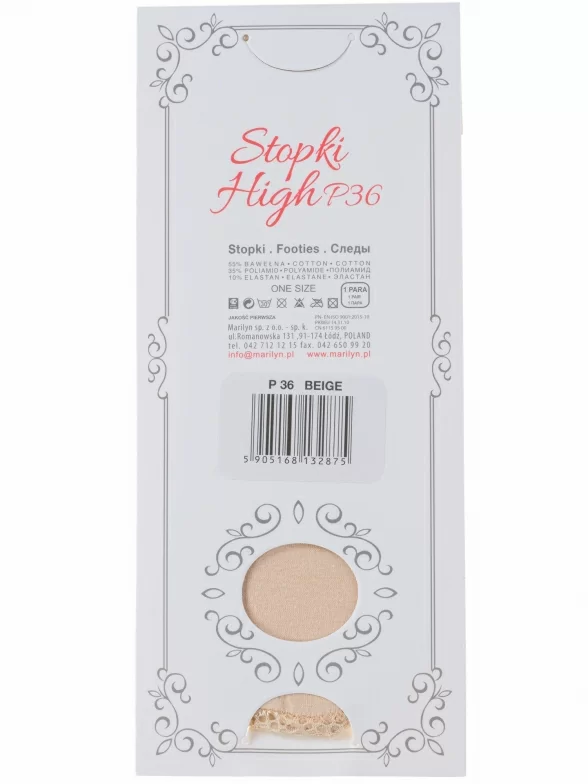 Пара подследников телесного цвета арт. P36 поставляется в фирменной упаковке и для сохранности дополнительно в плотном транспортном картоне.