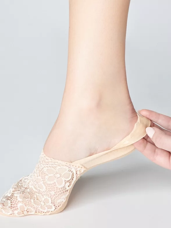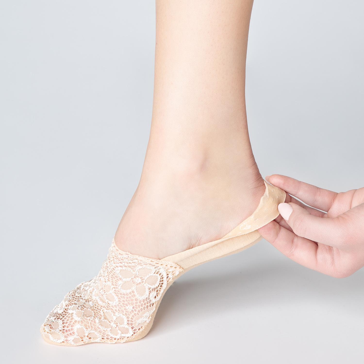 Модель закрывает пальцы и частично подъем стопы, поэтому она отлично подойдет для балеток, мокасин и другой низкой обуви. Дополнительный комфорт придают пришивная хлопковая стопа и силиконовые полоски, расположенные по краям изнутри и предотвращающие соскальзывание скроенных по форме стопы подследников.