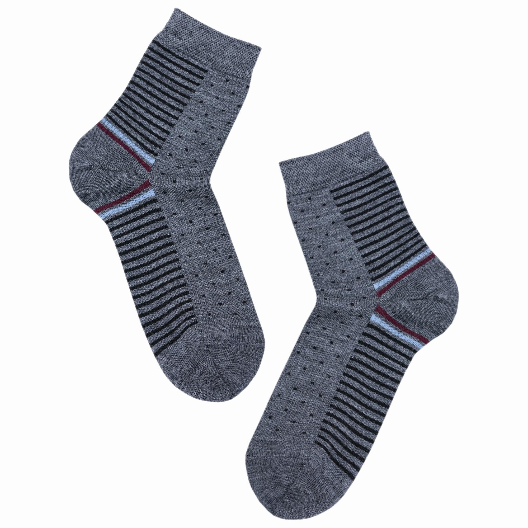 Теплые женские носки классической длины. Полушерстяная модель порадует оригинальным узором и подарит комфорт и тепло. Подошва носков оформлена чередующимися полосками, а подъем – контрастной “мушкой”. Мягкая резинка не оставляет следов на коже.
