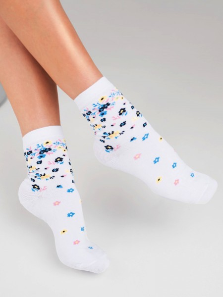 Укороченные женские носки, сделанные из мерсеризованного хлопка. Они приятны к телу и оформлены изысканным орнаментом. Мерсеризованный хлопок делает их более долговечными и придает особо приятную фактуру.
