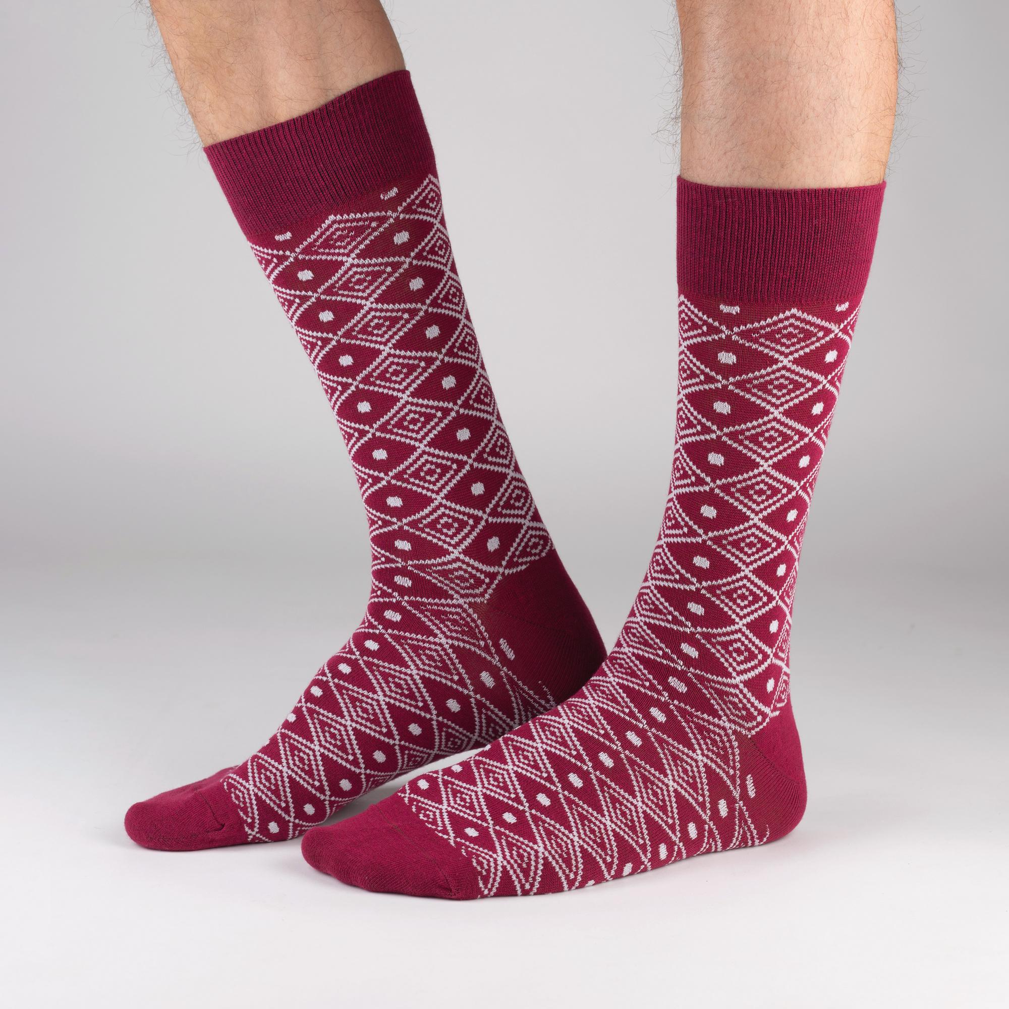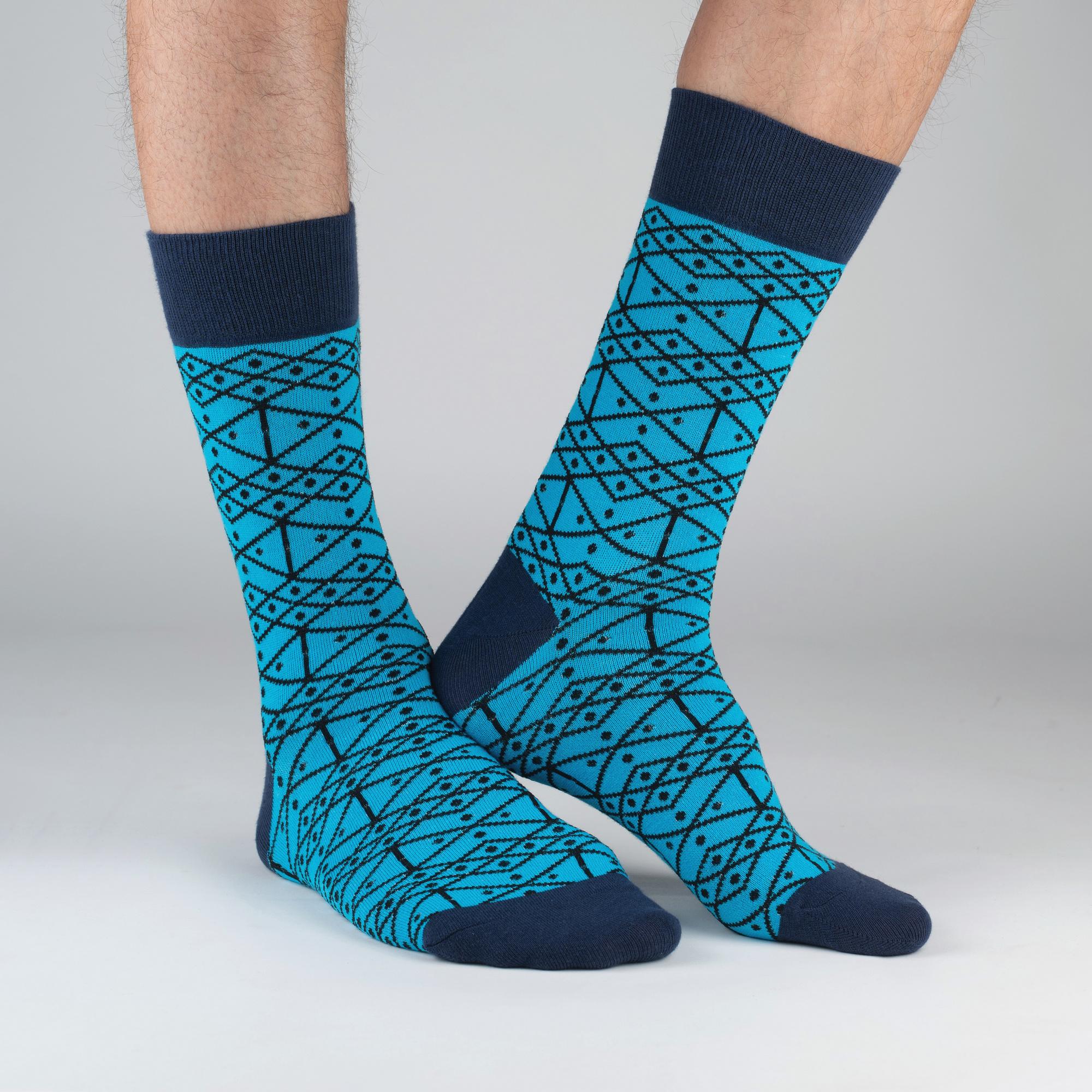 Модель средней длины с двойным бортом (манжетом резинки) и обычным швом на мыске. Связаны из хлопка на российской фабрике в Санкт-Петербурге. Входящие также в состав полиамид и эластан делают носки более плотными, эластичными и износостойкими.