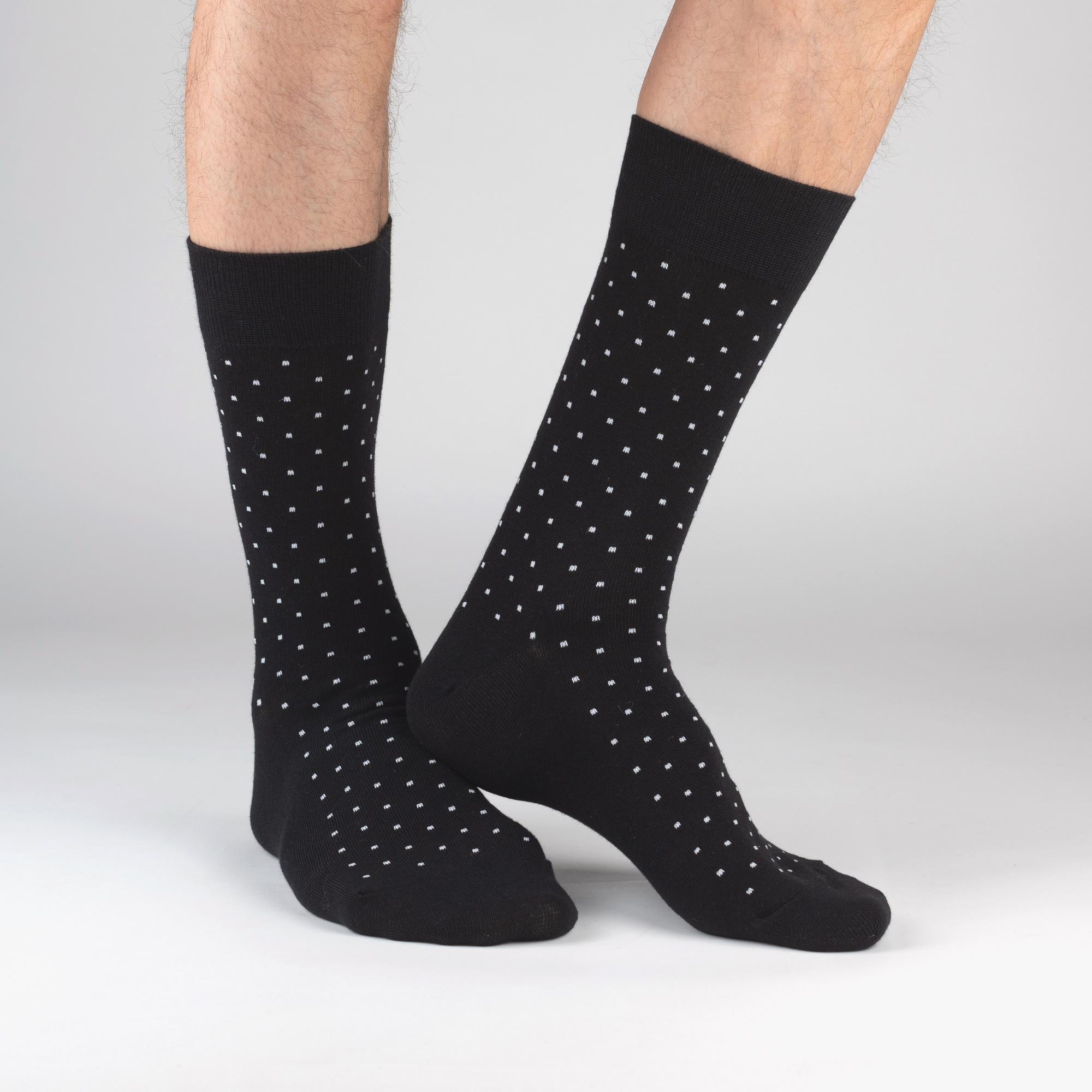 В этот набор мужских носков входят входят 25 пар в классическом черном цвете и 5 пар ярких носков с различными принтами, которые подойдут для любого повседневного образа.